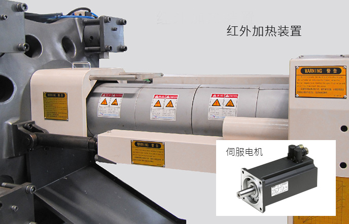 伺服驱动器在锁模保压冷却等阶段能输出最大压力但保持速度接近零速,因而功率消耗小,更节能 料筒采用纳米远红外高效节能加热装置,改善了传统加热圈电热转换效率低、热传导率低、表面温度高“两低一高”缺点,比传统加热圈节能30%-40%
